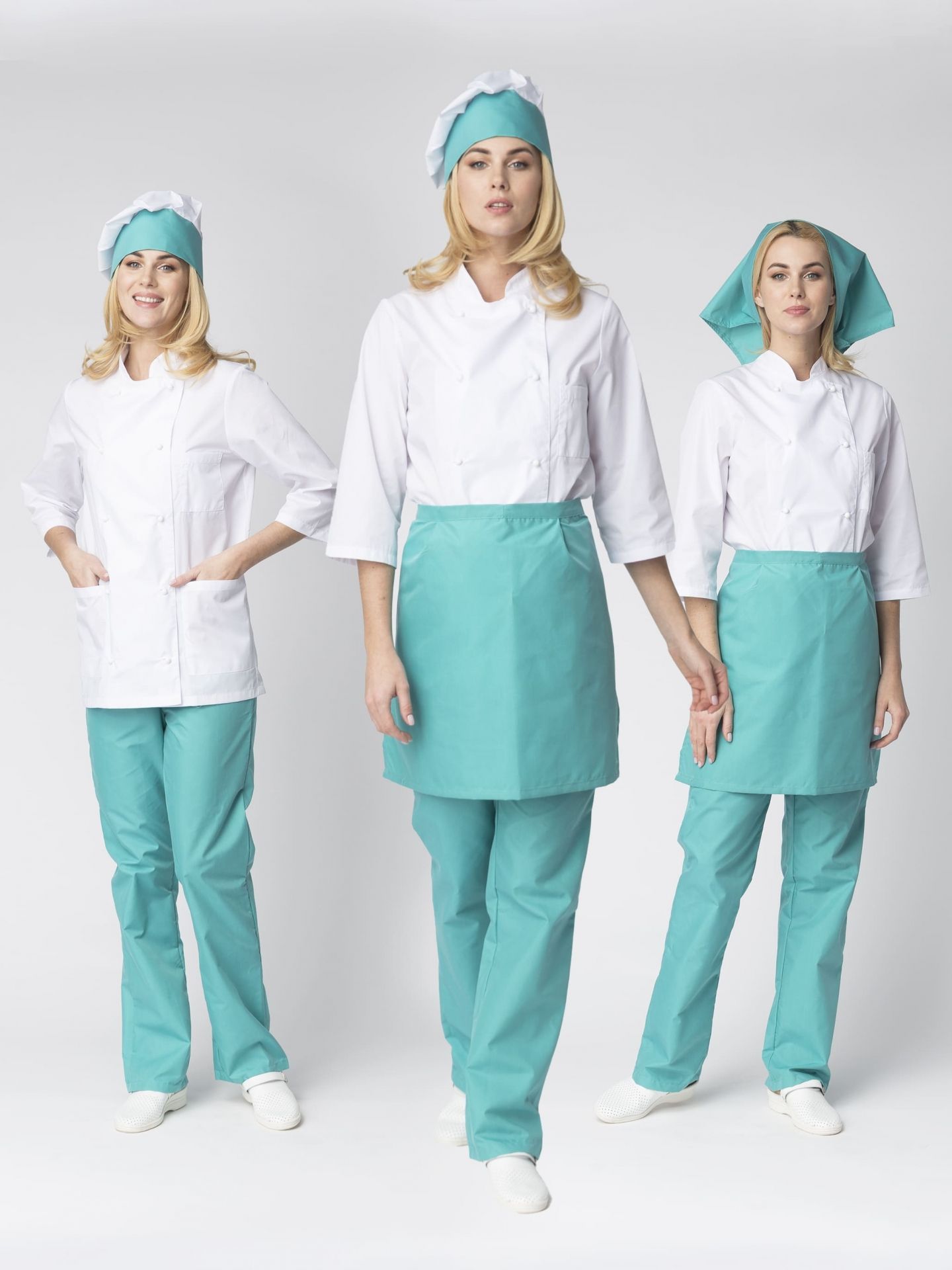 Костюм повара женский "Шеф" белый/бирюзовый (ЧЗ) (50803000) : купить в Иркутске, цены в каталоге интернет-магазина «Аспект»