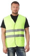 Жилет предназначен как для мужчин, так и для женщин. Относится к типу специальной сигнальной одежды и обеспечивает 2-й класс защиты. Изделие имеет свободную прямоугольную форму. Лёгкая сетчатая ткань позволяет с комфортом использовать жилет даже в жару. Вырез V-образный. Застёгивается жилет на липучку (контактные ленты Велкро). Для обеспечения повышенной видимости на ткань нашиты горизонтальные полосы 50 мм шириной, их отлично видно в тёмное время суток. Цвет ленты – серый, светоотражающий. Коэффициент световозвращения составляет не менее 400 кд/лк.м2. Края жилета окантованы полосой серого цвета.